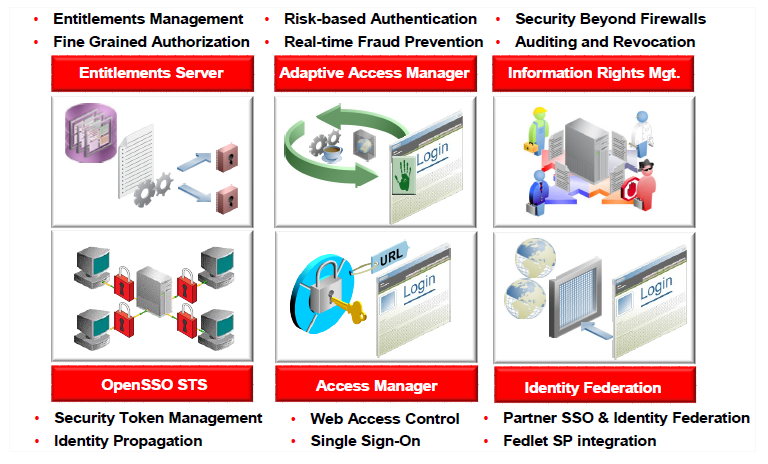 The Oracle Identity and Access Management Suite allows enterprises to manage end-to-end lifecycle of user identities across all enterprise resources both within and beyond the firewall. You can now deploy applications faster, apply the most granular protection to enterprise resources, automatically eliminate latent access privileges, and much more. Leverage the Oracle Identity and Access Management Suite in its entirety or deploy individual components of the suite to meet your unique needs. The Oracle Identity and Access Management Suite is a member of the Oracle Fusion Middleware family of products, which brings greater agility, better decision-making, and reduced cost and risk to diverse IT environments today.